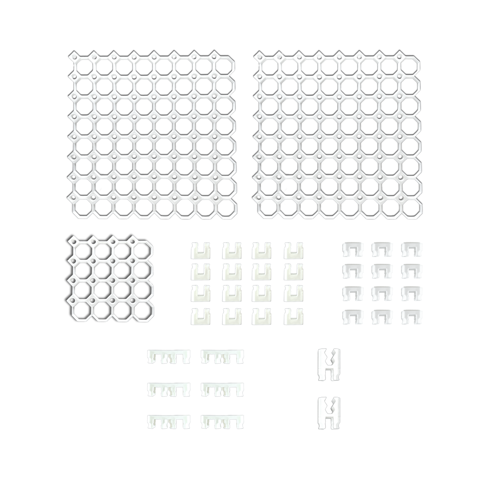 - 12 Base Pieces: Provide a secure, snap-on foundation for attaching Honeycomb components to your workspace.