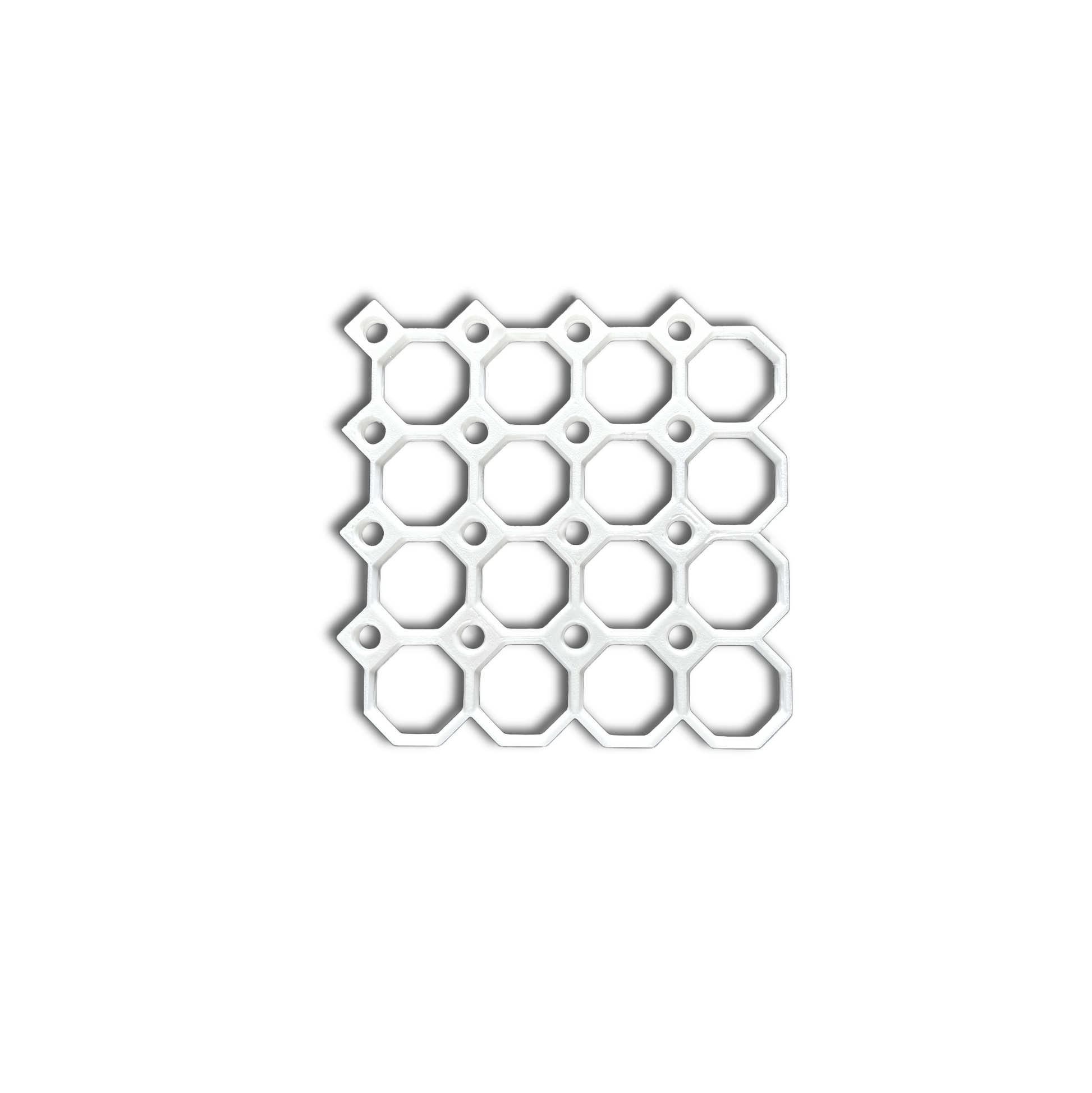 crafted for seamless organization and adaptability. The Honeycomb is a robust 4x4 grid foundation that accommodates an array of attachment components, tailored to streamline cables and cords for a clutter-free workspace. With its innovative design, the Honeycomb grid is easy to customize and adjust to your unique setup. Each system includes four sturdy 1x1 base pieces that attach to the back of the Honeycomb, allowing secure and versatile desk installation.
